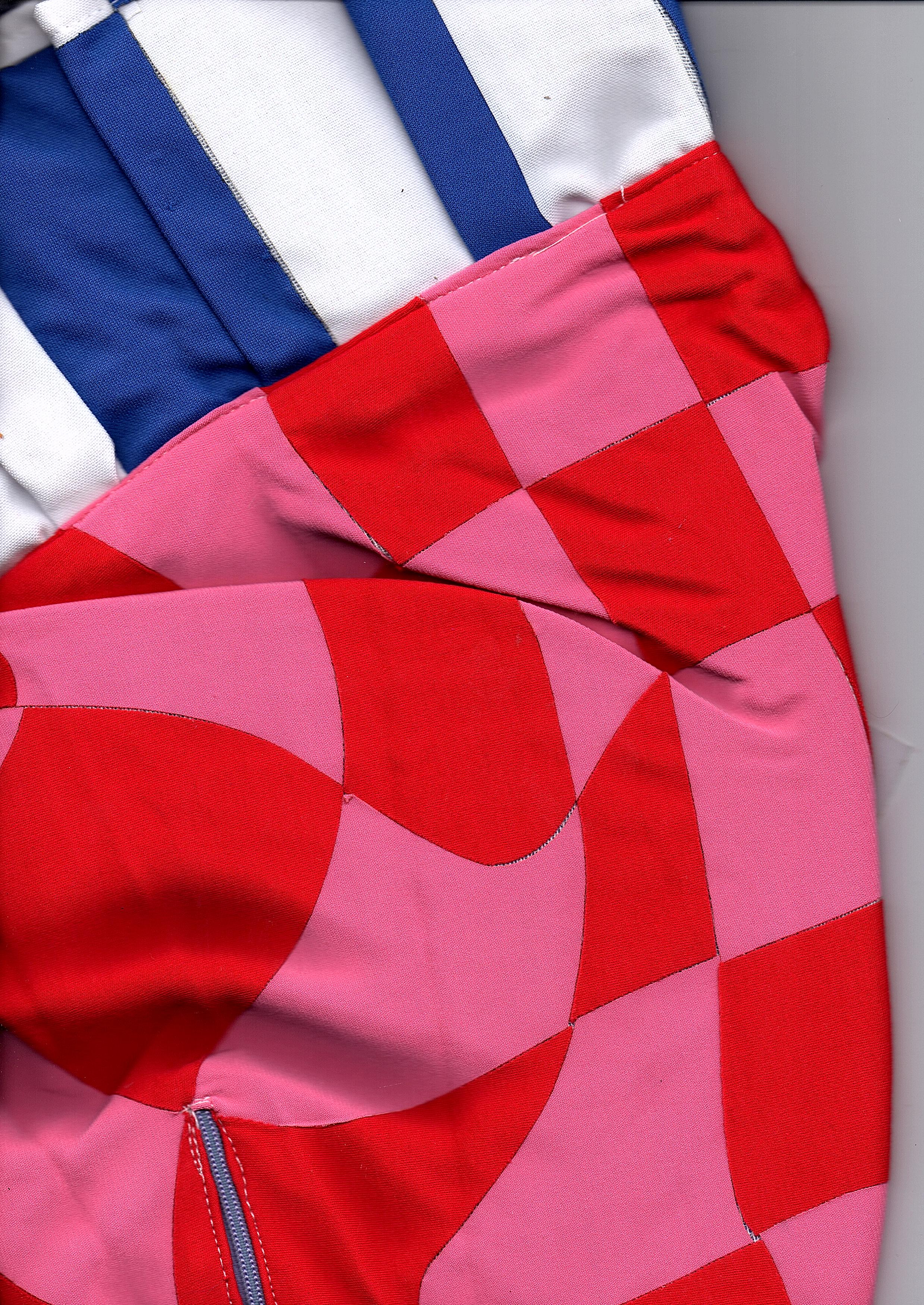 This textile investigation unveils a novel approach to create prints inspired by surveillance-evading patterns, employing a zero-waste and enjoyable process. I work with second-hand clothes and fabric strips that are laser-cut, generating large fabric puzzles to mix and match with many others. As a modern reinterpretation of patchwork, fabric is created using interlining and applied to geometric pattern making to minimize fabric wastage.